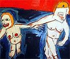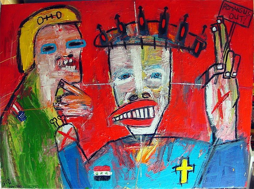 "Two Views from the Liberated" 30" x 40" mixed on chipboard "31 Days in July" 2003 project (July 5) *SOLD |
