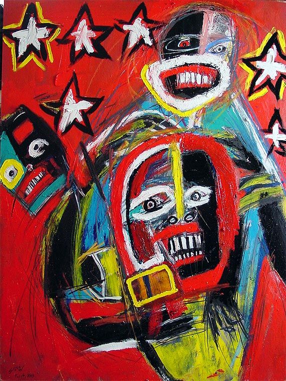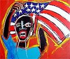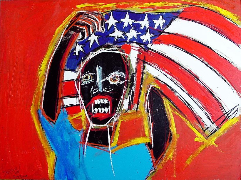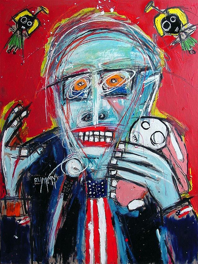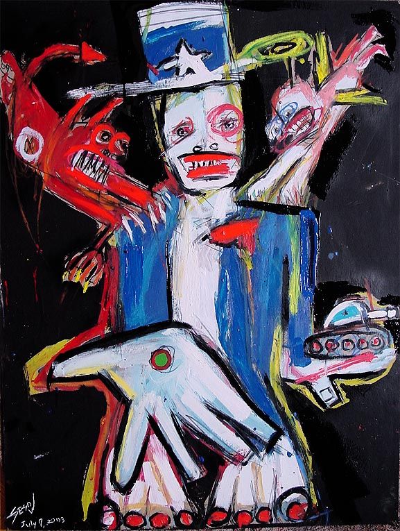 "I'm Afraid of Americans" 30" x 40" mixed on chipboard "31 Days in July" 2003 project (July 31) *SOLD |