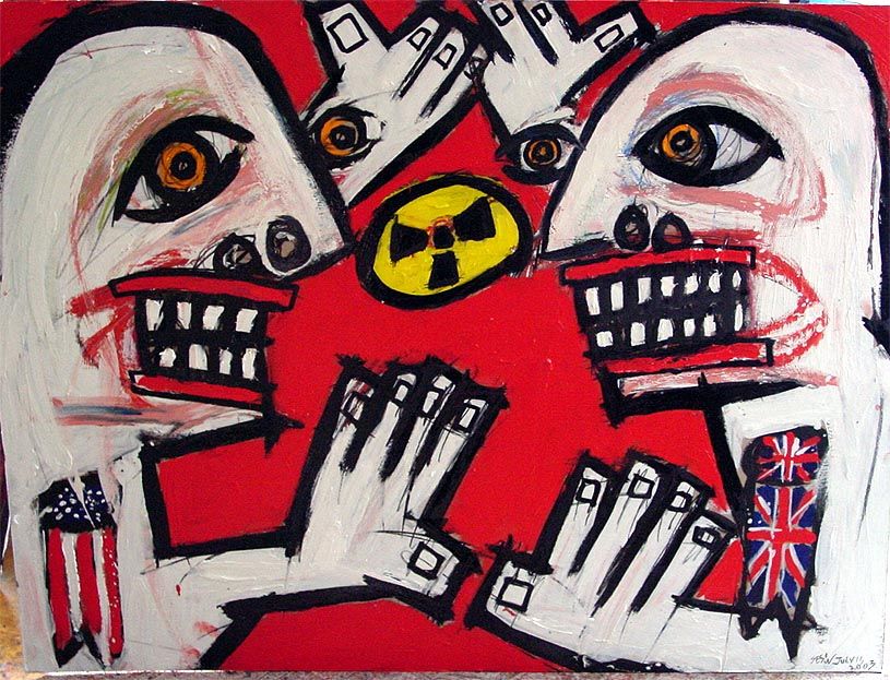 "Nuclear Pattycake Hot Potato" 30" x 40" mixed on chipboard "31 Days in July" 2003 project (July 11) *SOLD |