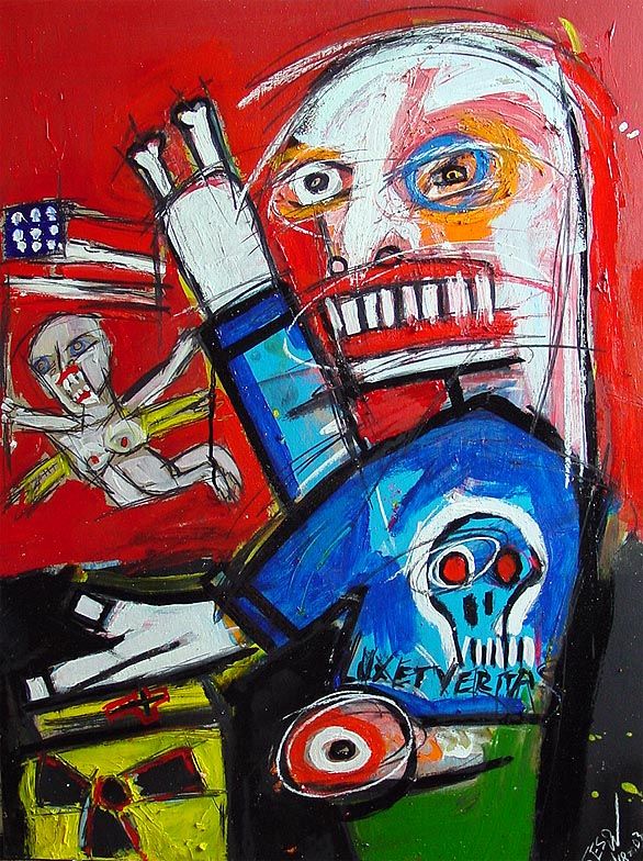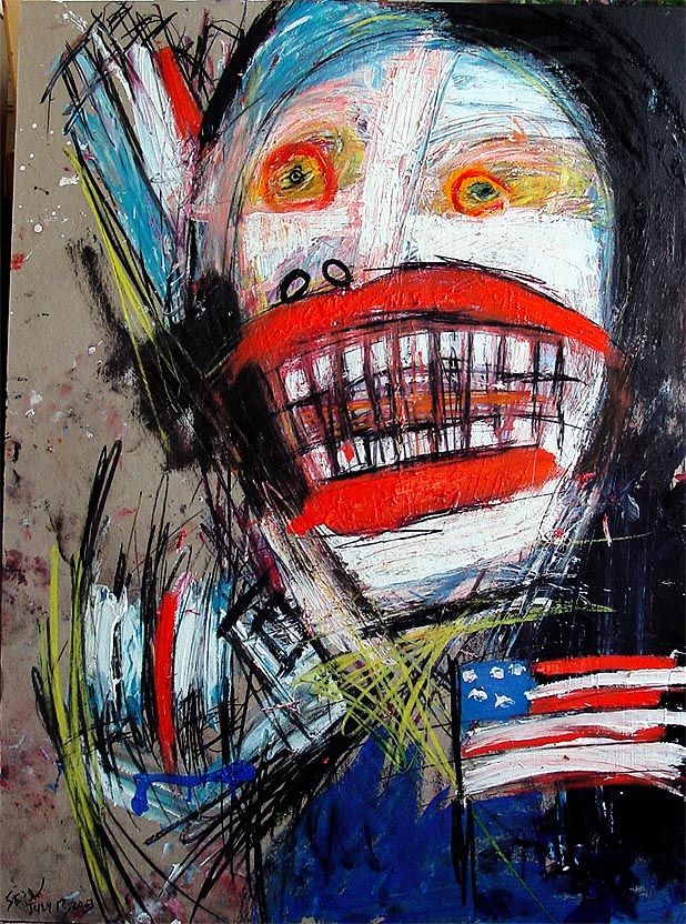 "Democracy Nightmare Flag Eater" 30" x 40" mixed on chipboard "31 Days in July" 2003 project (July 12) *SOLD |