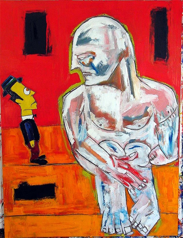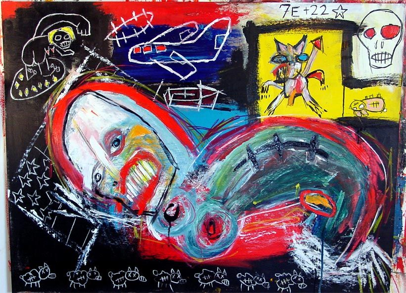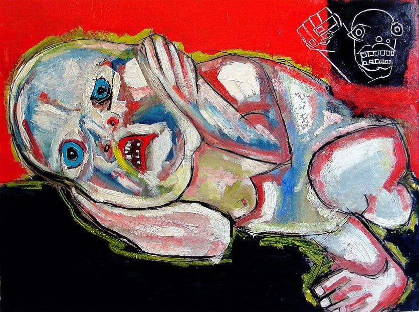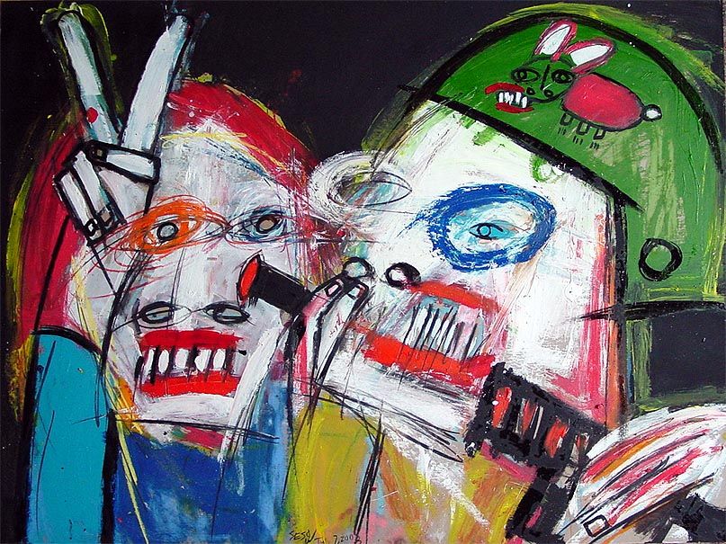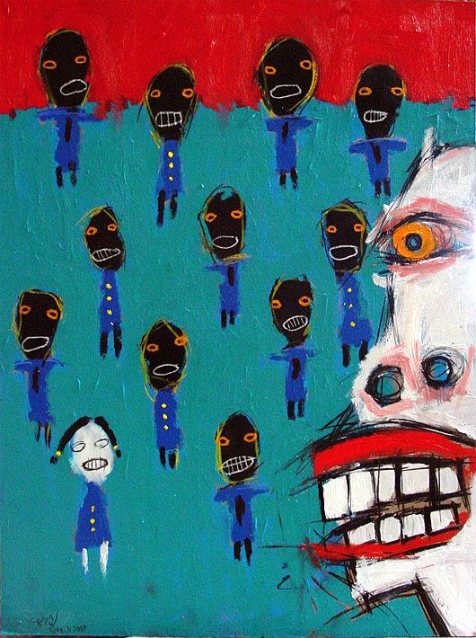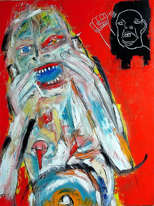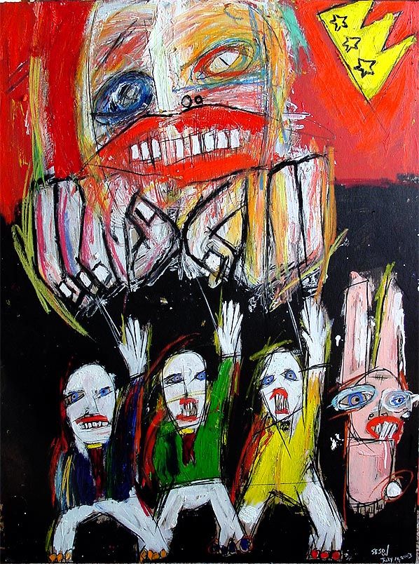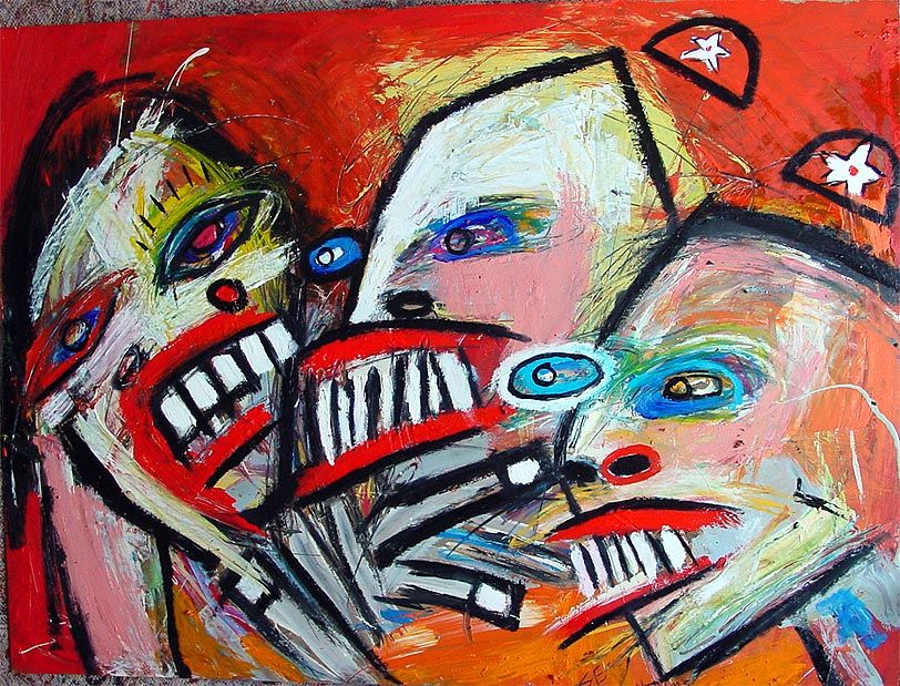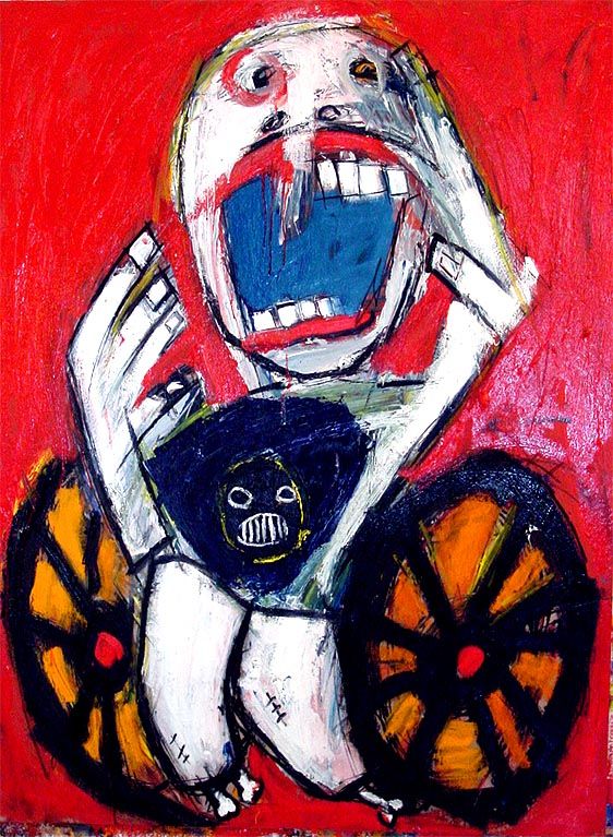 "A Little Dementia (outsider art is dead)" 30" x 40" mixed on chipboard "31 Days in July" 2003 project (July 28) *SOLD |