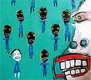 "A Boy's Life (with guardian angels)" 30" x 40" mixed on chipboard "31 Days in July" 2003 project (July 22) *SOLD |