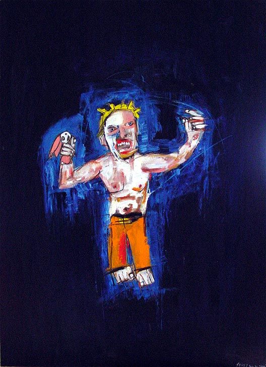 "Emancipated Man" 30" x 40" mixed on chipboard "31 Days in July" 2003 project (July 21) *SOLD |