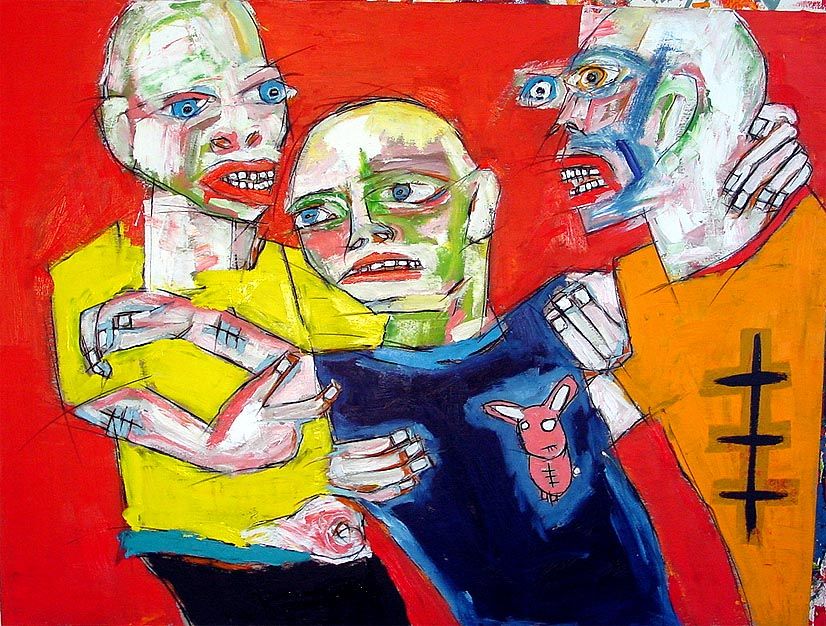 "The Body Gets Used to the Pain" 30" x 40" mixed on chipboard "31 Days in July" 2003 project (July 20) *SOLD |