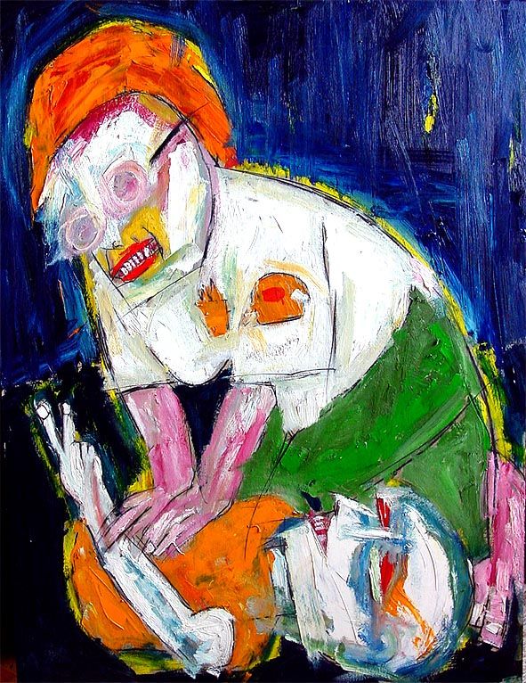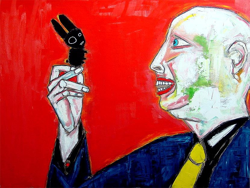 "Puppeteer, with bunny" 30" x 40" mixed on chipboard "31 Days in July" 2003 project (July 14) *SOLD |