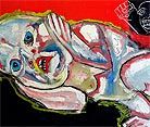 "One Thumb Up (read 'em and weep)" 30" x 40" mixed on chipboard "31 Days in July" 2003 project (July 19) *SOLD |