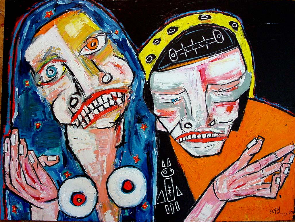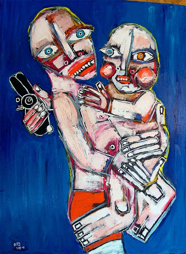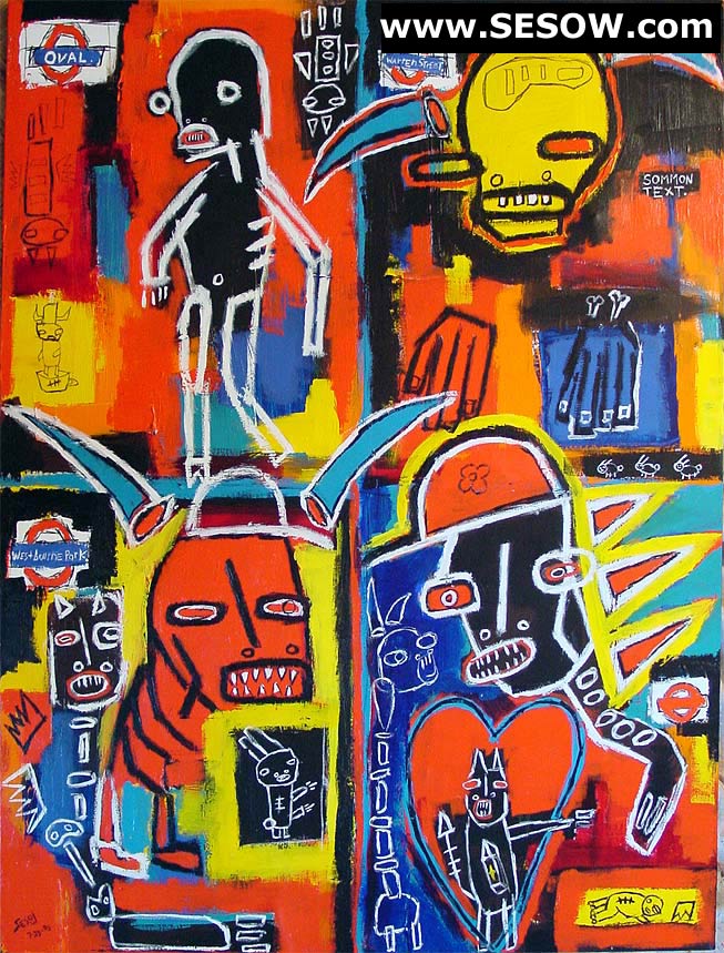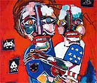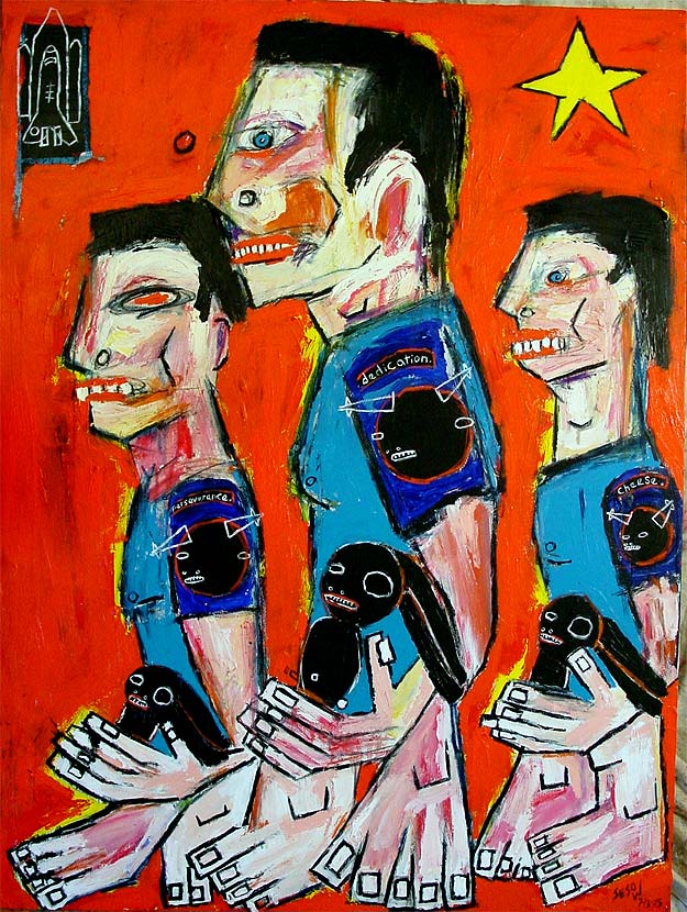 "Alienation" (story:london police reveal brazilian shot yesterday 5 times in head by police after chase was innocent) 30" x 40" acrylic on stretched canvas "31 Days in July Series" (July 24) *SOLD link to 2004 ... link to 2003 |