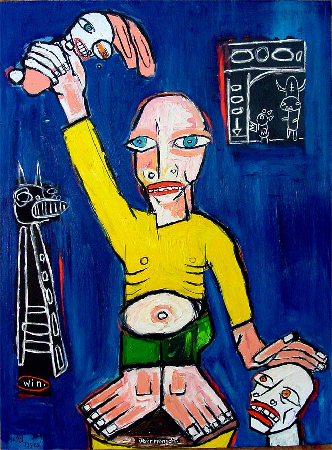 "Ubermensch" (story:lance armstrong wins 7th consec. tour de france) 30" x 40" oil on stretched canvas "31 Days in July Series" (July 25) *SOLD link to 2004 ... link to 2003 |