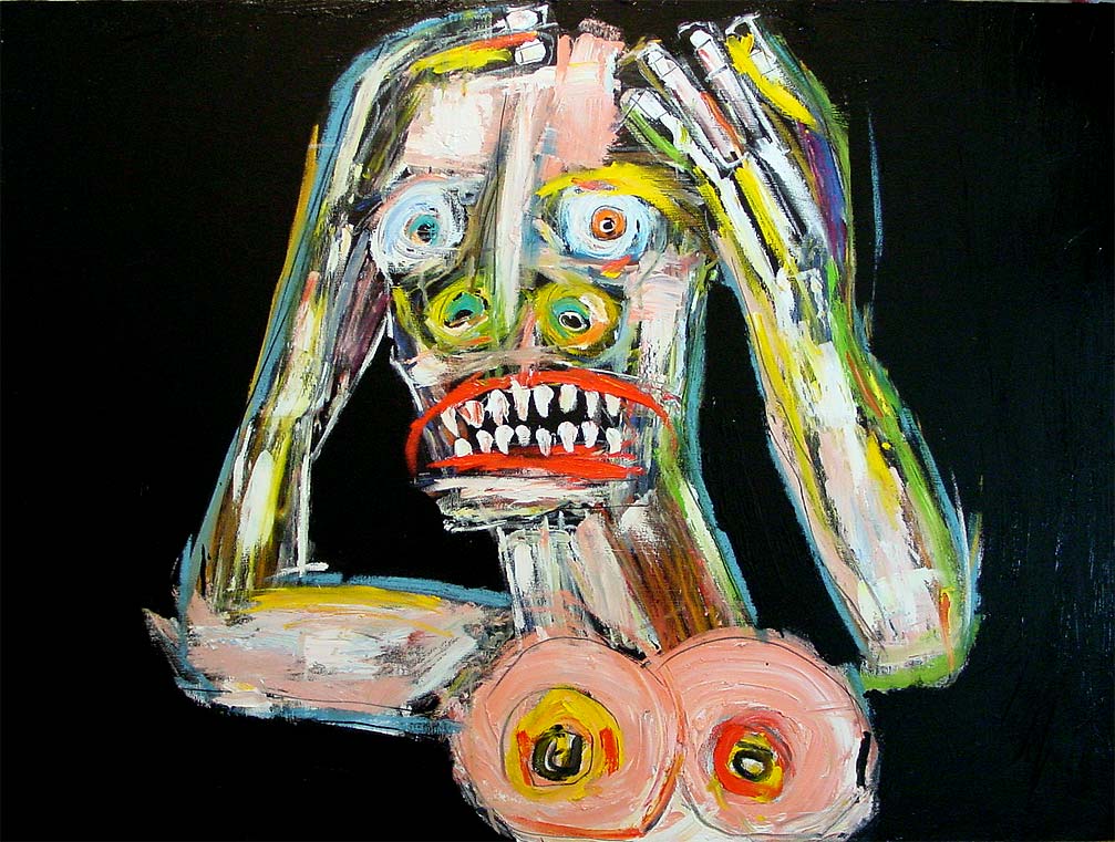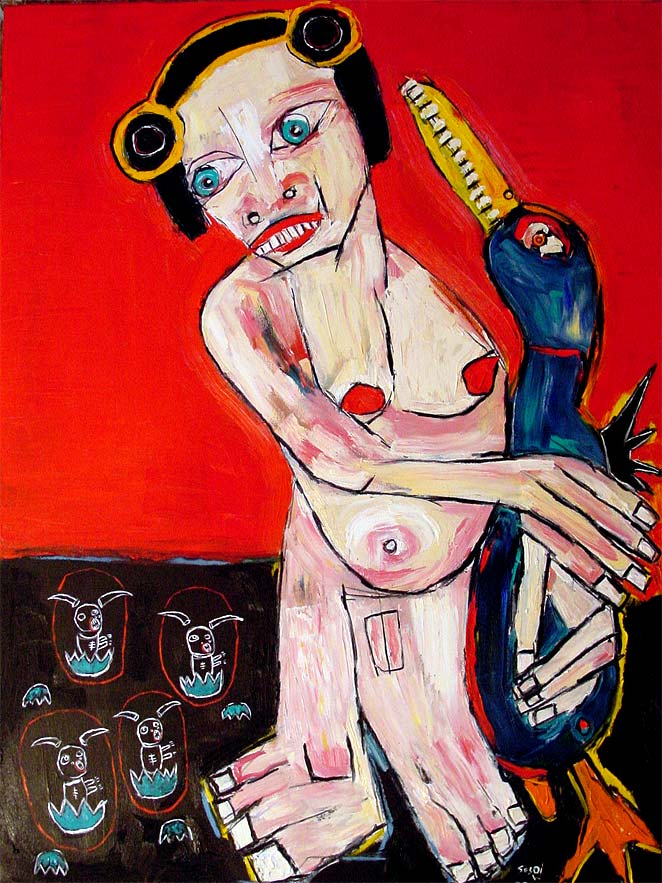 "Girl gone wild" 30" x 40" (story:sandra supreme retires) oil on stretched canvas "31 Days in July Series" (July 2) *SOLD link to 2004 ... link to 2003 |