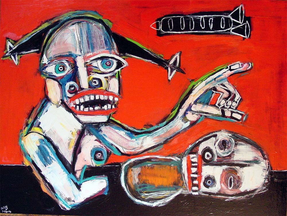 "Dude." (story:failed bombing in london on thursday, roberts op on busing) 30" x 40" acrylic on stretched canvas "31 Days in July Series" (July 22) *SOLD link to 2004 ... link to 2003 |
