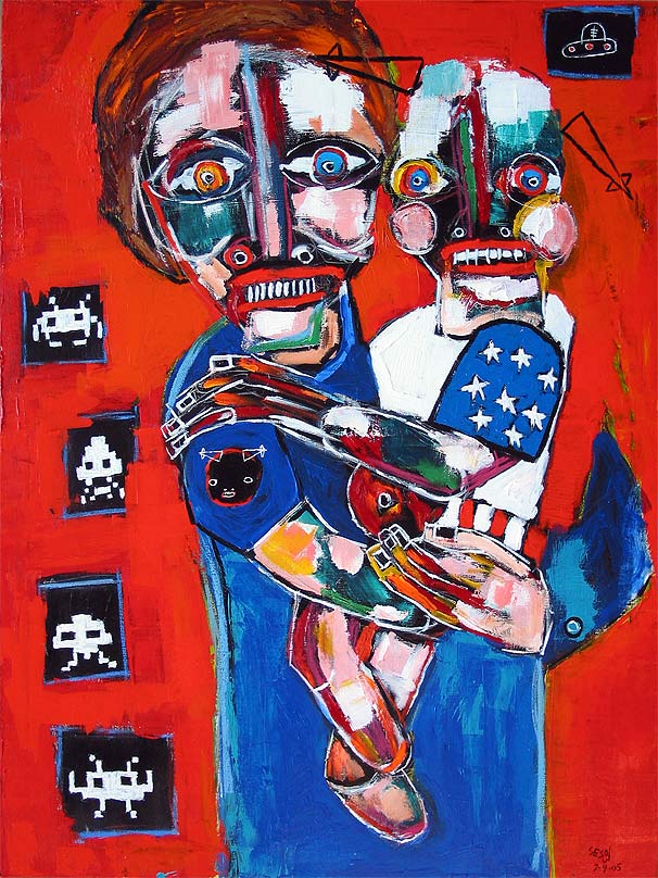 "Space Invaders" (story:shuttle commander starts next challenge) 30" x 40" acrylic on stretched canvas "31 Days in July Series" (July 4) *SOLD link to 2004 ... link to 2003 |