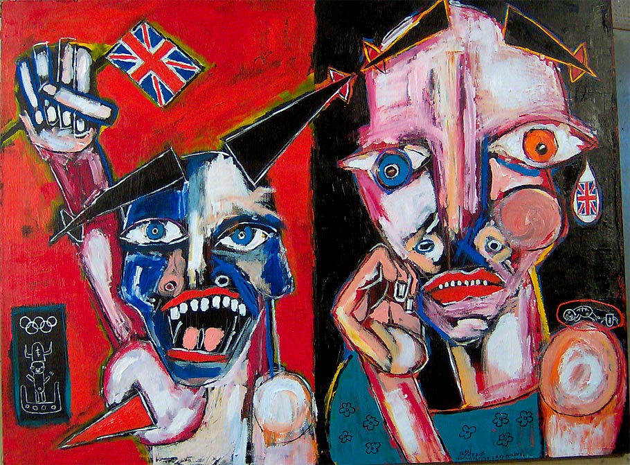 "What a Difference a Day Makes" (story:london to host olympics, terrorist bombings this morning) 30" x 40" acrylic on stretched canvas "31 Days in July Series" (July 7) *SOLD link to 2004 ... link to 2003 |