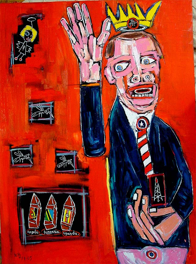 "Jewel In the Crown" (story:Bush Pledges 1.2 billion for Africa to fight malaria) 30" x 40" oil on stretched canvas "31 Days in July Series" (July 1) *SOLD CLICK HERE FOR INFO link to 2004 ... link to 2003 |