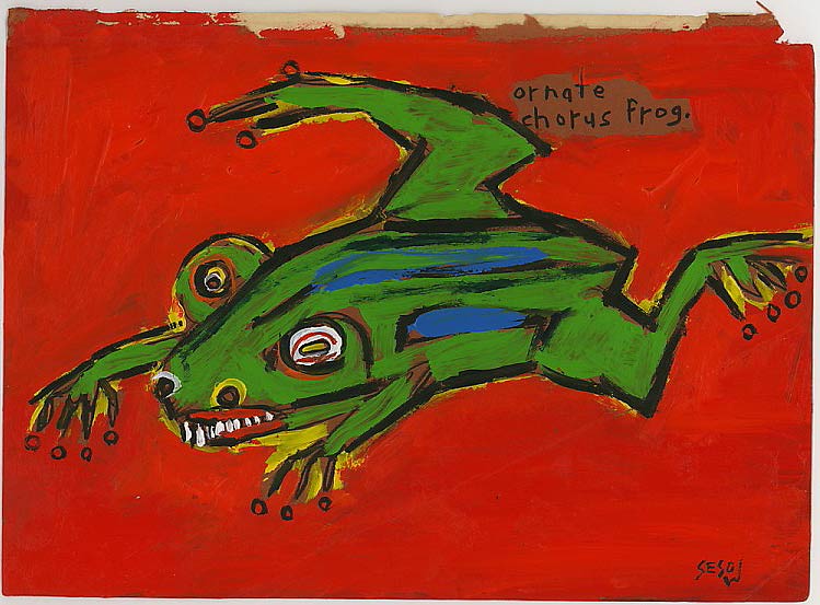 "Ornate Chorus Frog" approx 9.75" x 6.75" acrylic on July 1936 National Geographic cover CLICK HERE to see back *SOLD |