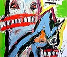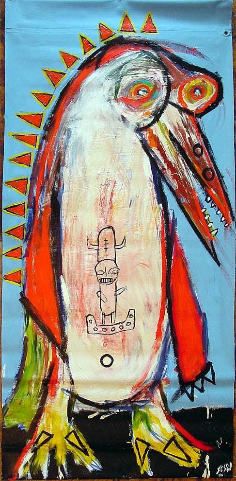 "hatchling" 60" x 29" oil/mixed on canvas banner (with grommets, right side) $550 |