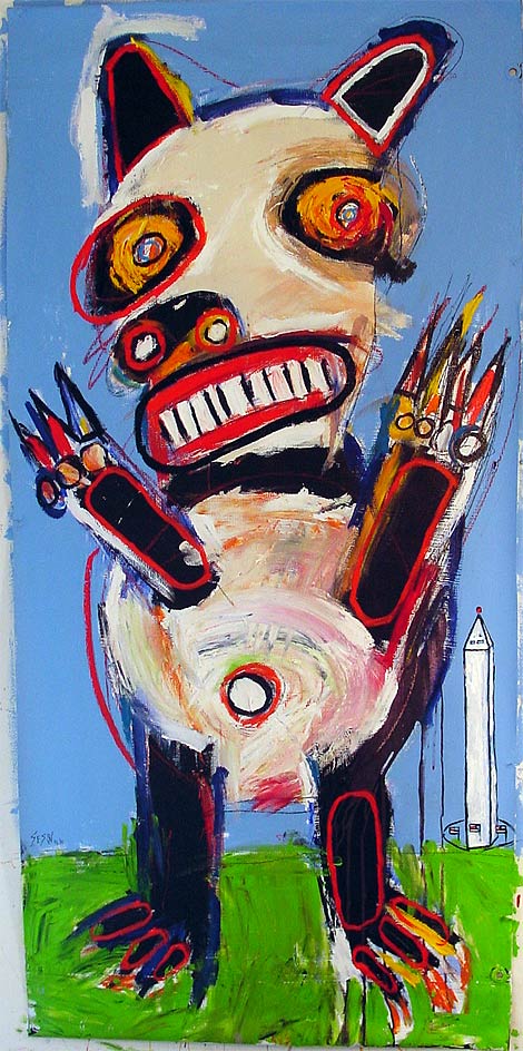 "Panda (at the Mall)" 60" x 29" oil/mixed on canvas banner (with grommets) *SOLD |