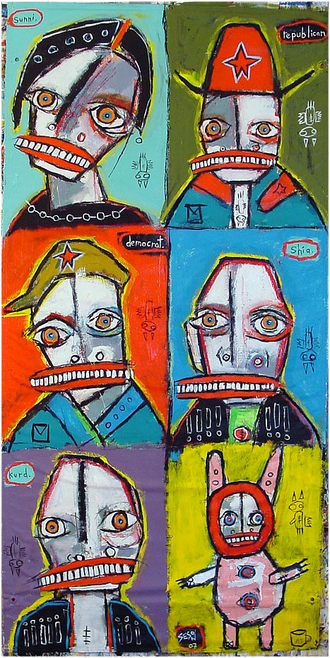 "Divided" 60" x 30" oil/acrylic on DC street banner (VSA arts 2004 banner) *SOLD |