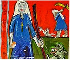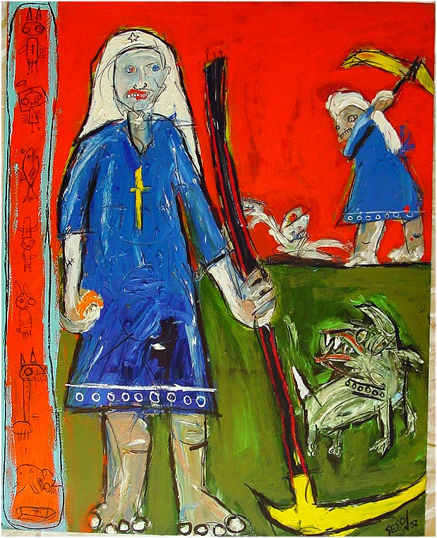 "Throwing rocks at dogs with nuns" 32" x 40" oil/acrylic on watercolor board *SOLD |