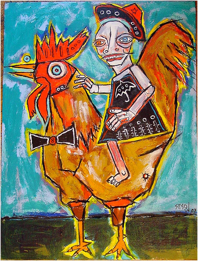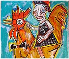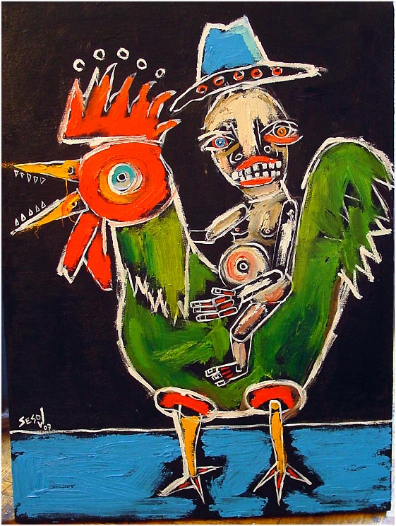 "Free Range Amigo, with rain poncho" 18" x 24" oil/acrylic on stretched canvas *SOLD |