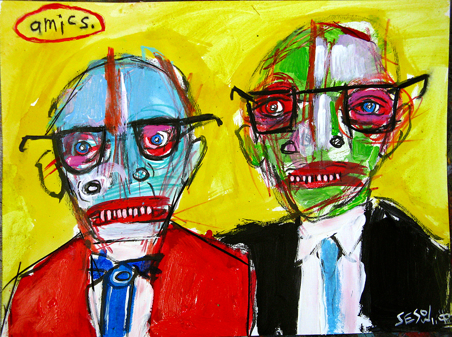 "The Friends" mix on paper 9" x 12" created in Barcelona, Spain (April 2011) *SOLD email sesow@sesow.com to reserve/ask about purchasing. please include url and description. |