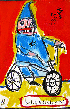 "bedouin (on bicycle)" mix on watercolor paper 4" x 6" created in Casablanca, Morocco (April 2011) $35 email sesow@sesow.com to reserve/ask about purchasing. please include url and description. |