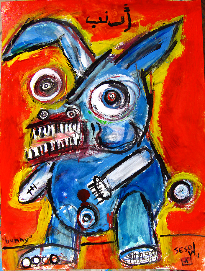 "Bunny" mix on paper 9" x 12" created in Casablanca, Morocco (April 2011) $60 email sesow@sesow.com to reserve/ask about purchasing. please include url and description. |