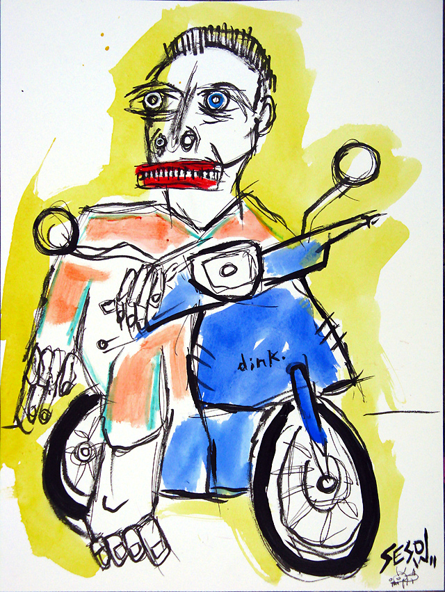 "Lad on Dink" mix on paper 9" x 12" created in Barcelona, Spain (April 2011) *SOLD email sesow@sesow.com to reserve/ask about purchasing. please include url and description. |