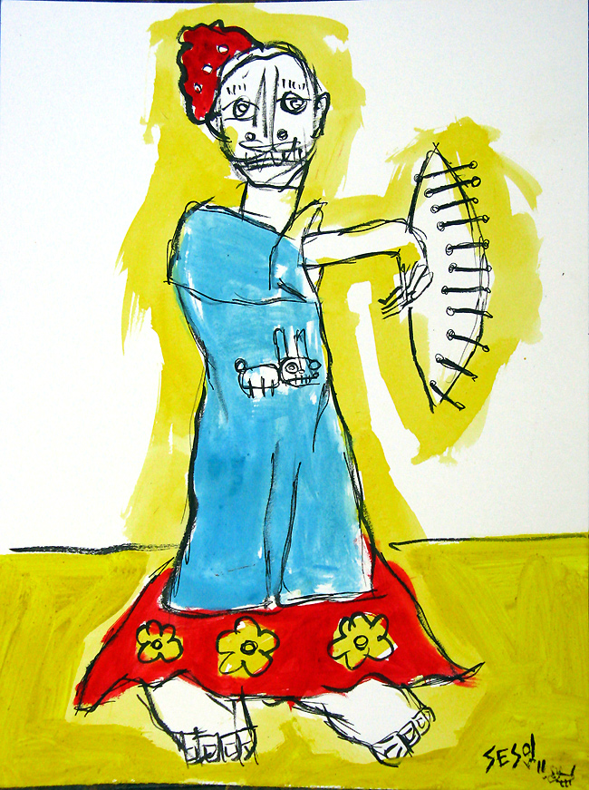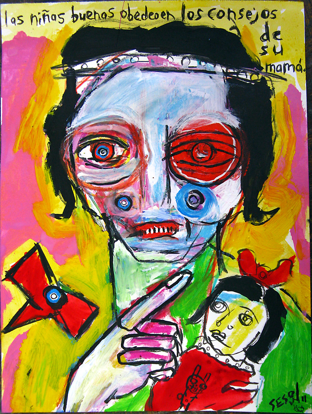 "las ninos buenas obedeoen los consejos de su mama" mix on paper 9" x 12" created in Barcelona, Spain (April 2011) *SOLD email sesow@sesow.com to reserve/ask about purchasing. please include url and description. |
