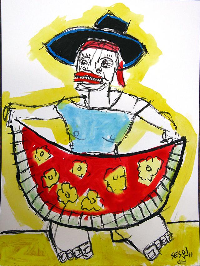 "Spanish Dancer" mix on paper 9" x 12" created in Barcelona, Spain (April 2011) $50 email sesow@sesow.com to reserve/ask about purchasing. please include url and description. |