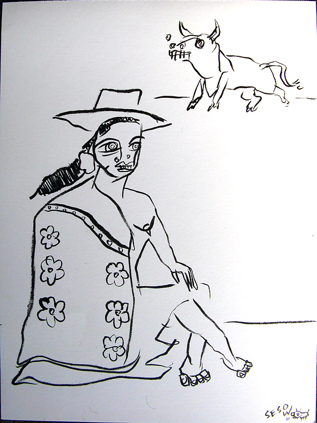 "Girl With Bull" mix on paper 9" x 12" created in Barcelona, Spain (April 2011) *SOLD email sesow@sesow.com to reserve/ask about purchasing. please include url and description. |