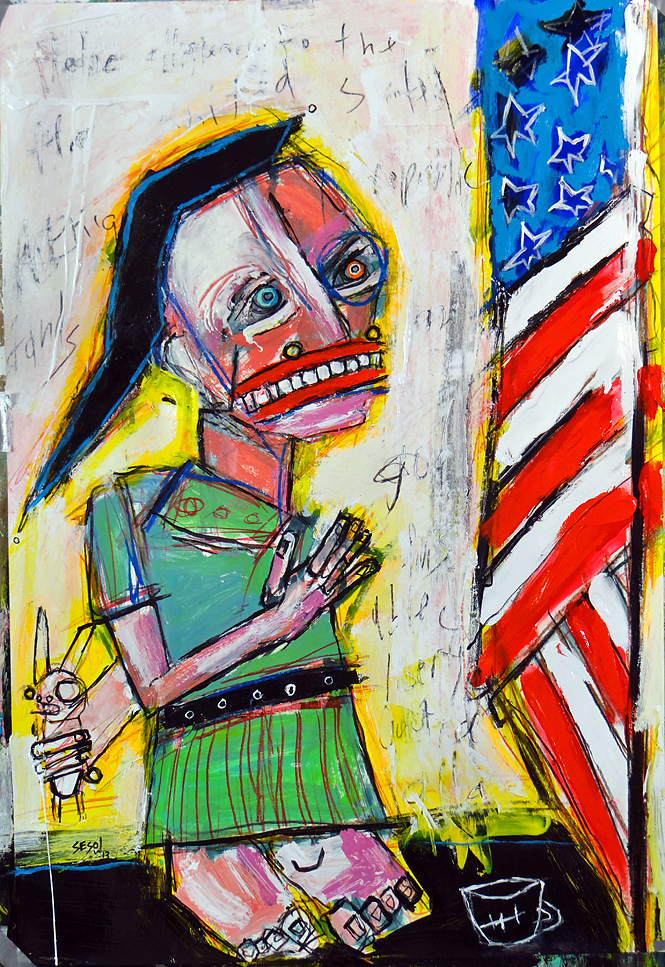"Pledge of Allegiance" acrylic/mix on archival paper 15" x 22" $120 email sesow@sesow.com to reserve/ask about purchasing. please include url and description. |