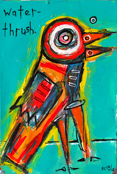 "Water thrush" acrylic/mix on archival paper 9" x 6" *SOLD email sesow@sesow.com to reserve/ask about purchasing. please include url and description. |