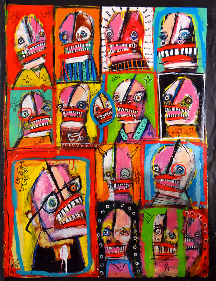 "Sesow Sampler" acrylic/mix on unstretched canvas approx. 25.5 x 36" (black border around approx. 2.5") *SOLD email sesow@sesow.com to reserve/ask about purchasing. please include url and description. |