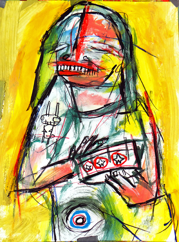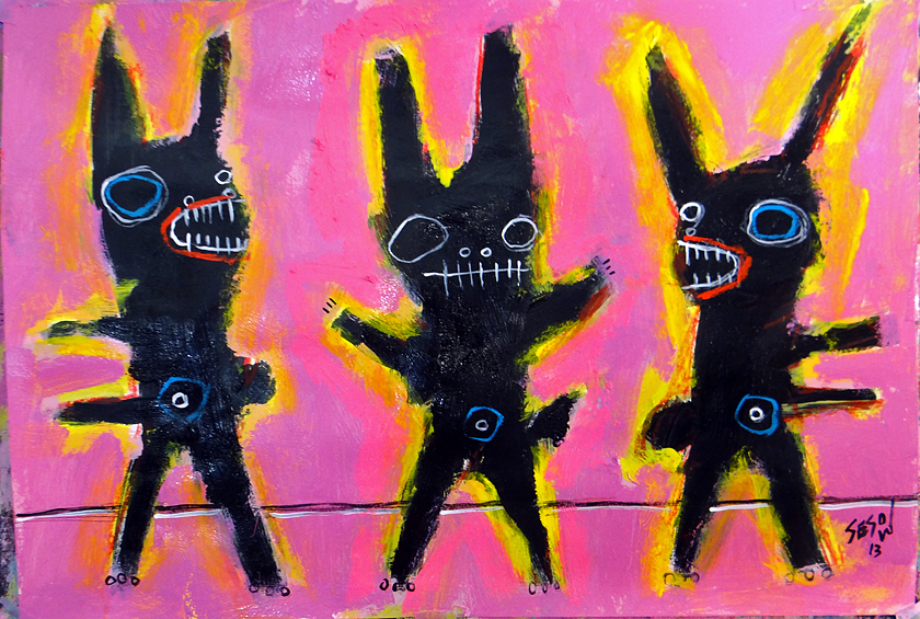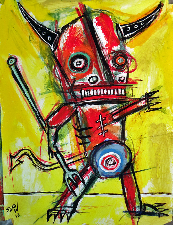 "Little Devil" acrylic/mix on archival paper 9" x 12" *SOLD email sesow@sesow.com to reserve/ask about purchasing. please include url and description. |