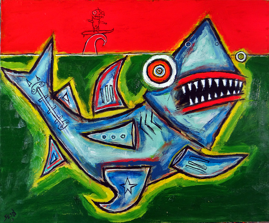 "Shark" acrylic/oil on stretched canvas 20" x 24" *SOLD email sesow@sesow.com to reserve/ask about purchasing. please include url and description. |