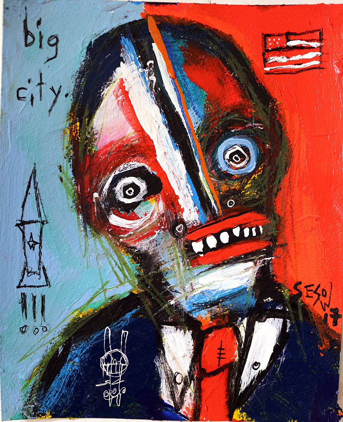 "Downtown Lad" acrylic on archival paper 8" x 10" *SOLD email sesow@sesow.com to reserve/ask about purchasing. please include url and description. |