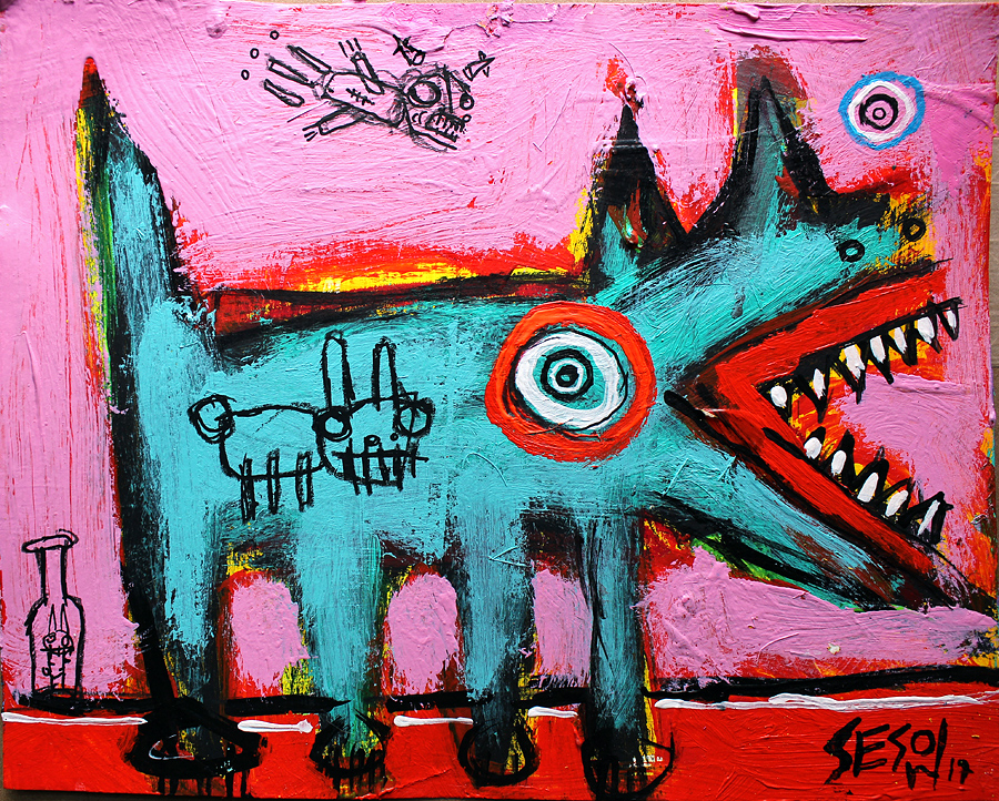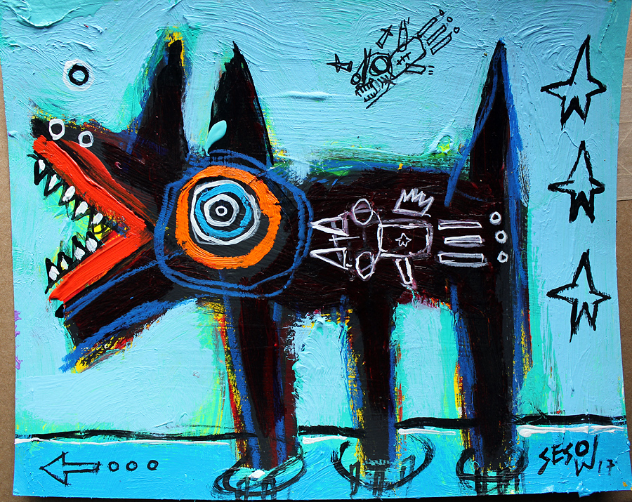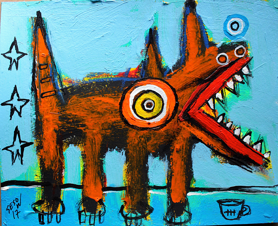 "Stray Dog" acrylic on archival paper 8" x 10" *SOLD email sesow@sesow.com to reserve/ask about purchasing. please include url and description. |