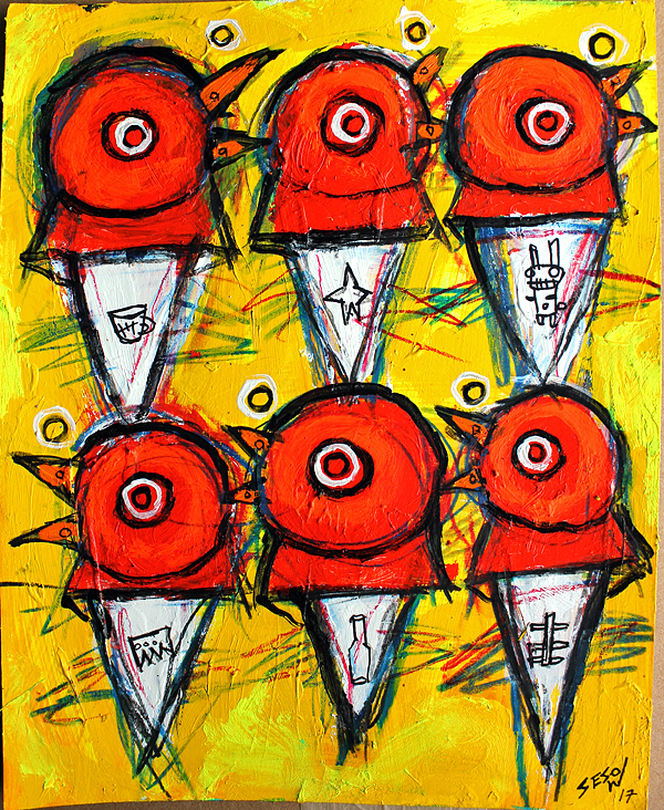 "All-American Bird" acrylic on archival paper 8" x 10" $60 email sesow@sesow.com to reserve/ask about purchasing. please include url and description. |