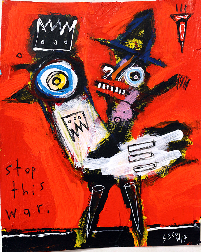 "Stop this war" acrylic on archival paper 8" x 10" available at Jeanine Taylor Gallery: Sanford, FL email sesow@sesow.com to reserve/ask about purchasing. please include url and description. |