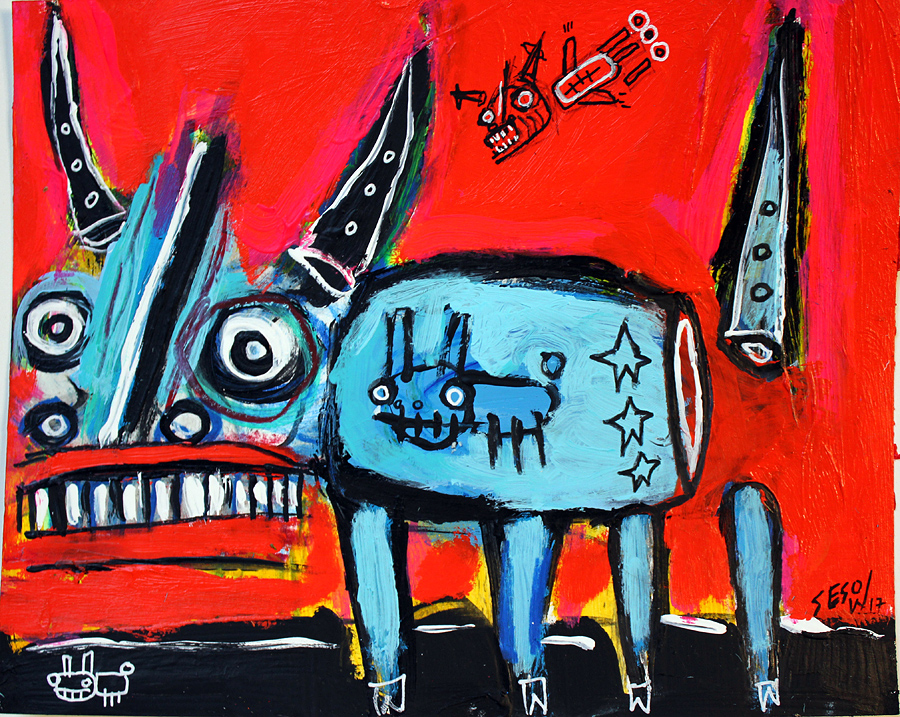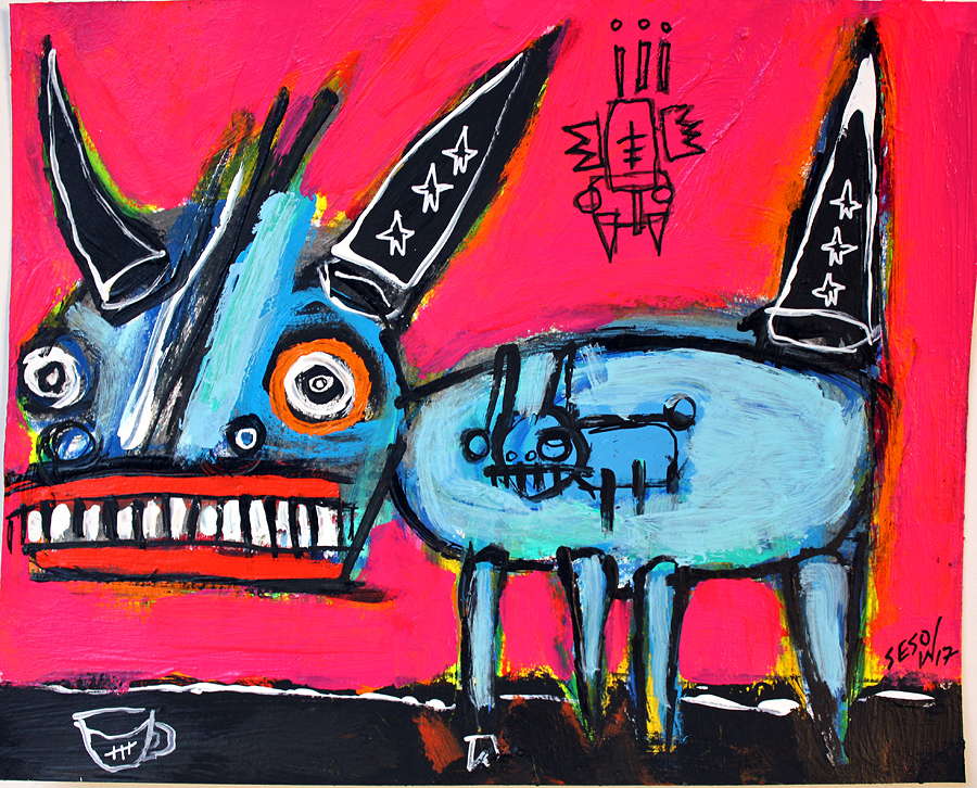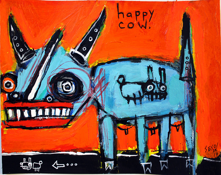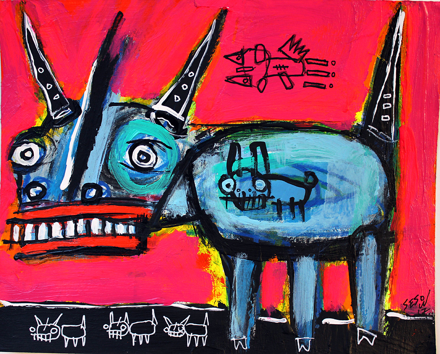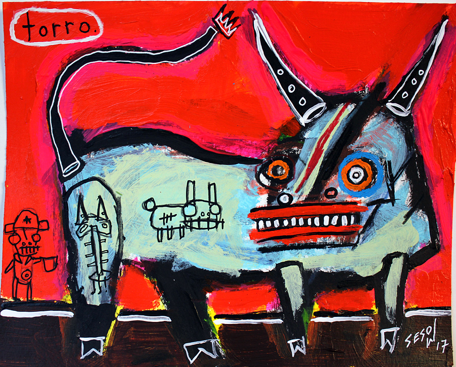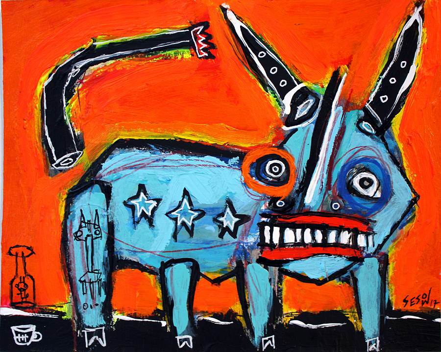 "Three-star bull" acrylic on archival paper 8" x 10" *SOLD email sesow@sesow.com to reserve/ask about purchasing. please include url and description. |