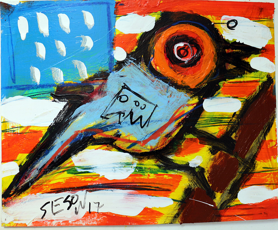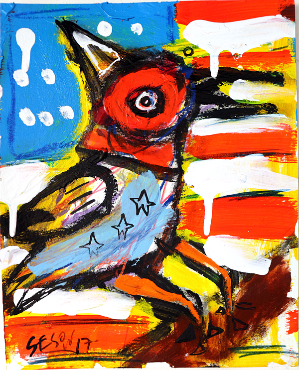 "American Bird(7)" acrylic on archival paper 8" x 10" *SOLD email sesow@sesow.com to reserve/ask about purchasing. please include url and description. |