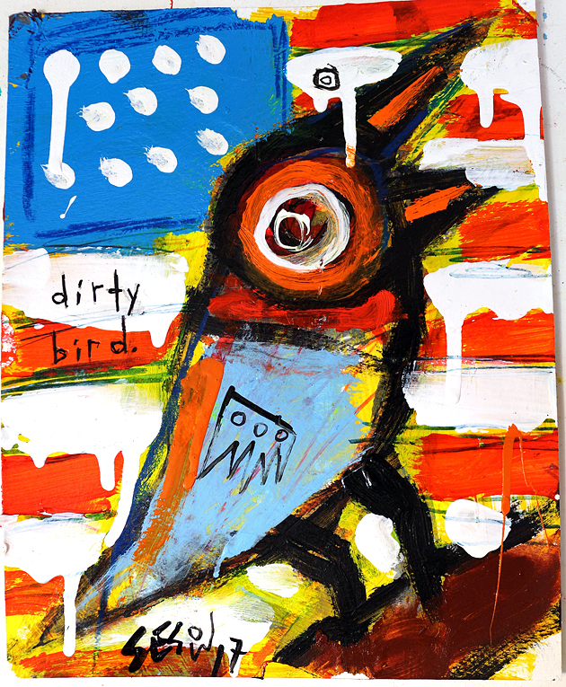 "Dirty Bird USA" acrylic on archival paper 8" x 10" *SOLD email sesow@sesow.com to reserve/ask about purchasing. please include url and description. |