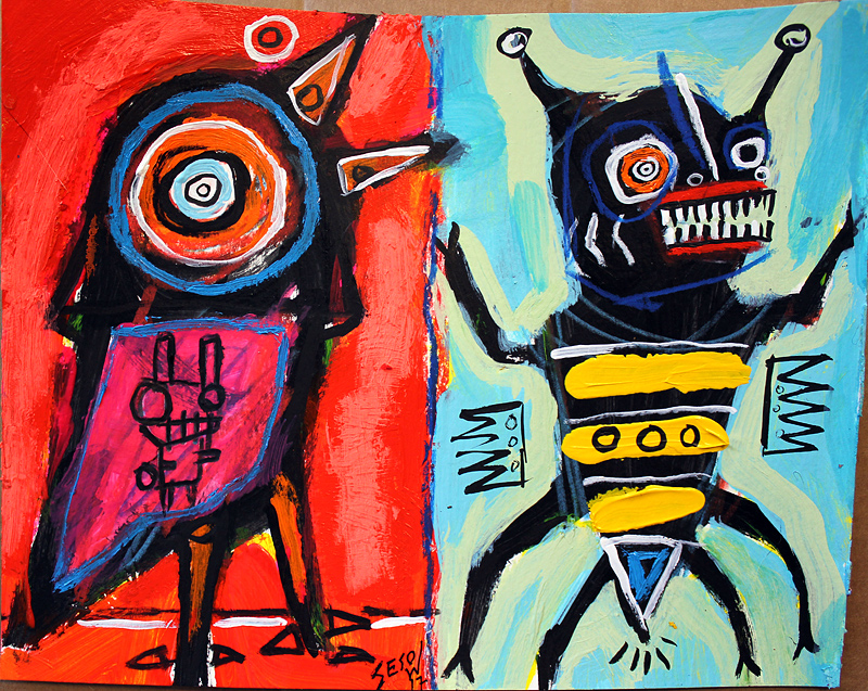 "Silent Friends" acrylic on cardboard 8" x 10" *SOLD email sesow@sesow.com to reserve/ask about purchasing. please include url and description. |