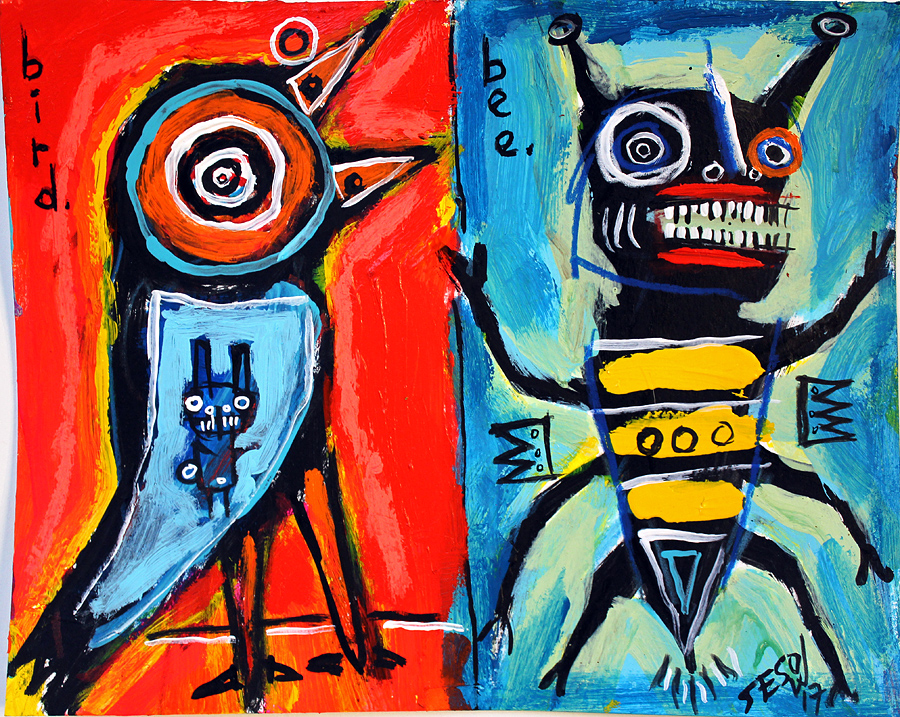 "Bird and a Bee" acrylic on archival paper 8" x 10" *SOLD email sesow@sesow.com to reserve/ask about purchasing. please include url and description. |
