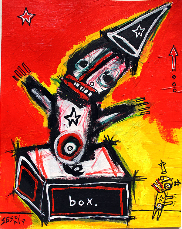 "A Jack in the box" acrylic on archival paper 8" x 10" available at Jeanine Taylor Gallery: Sanford, FL email sesow@sesow.com to reserve/ask about purchasing. please include url and description. |