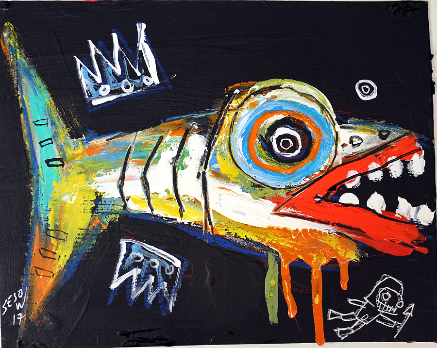 "Fish" acrylic on cardboard 8" x 10" $80 email sesow@sesow.com to reserve/ask about purchasing. please include url and description. |