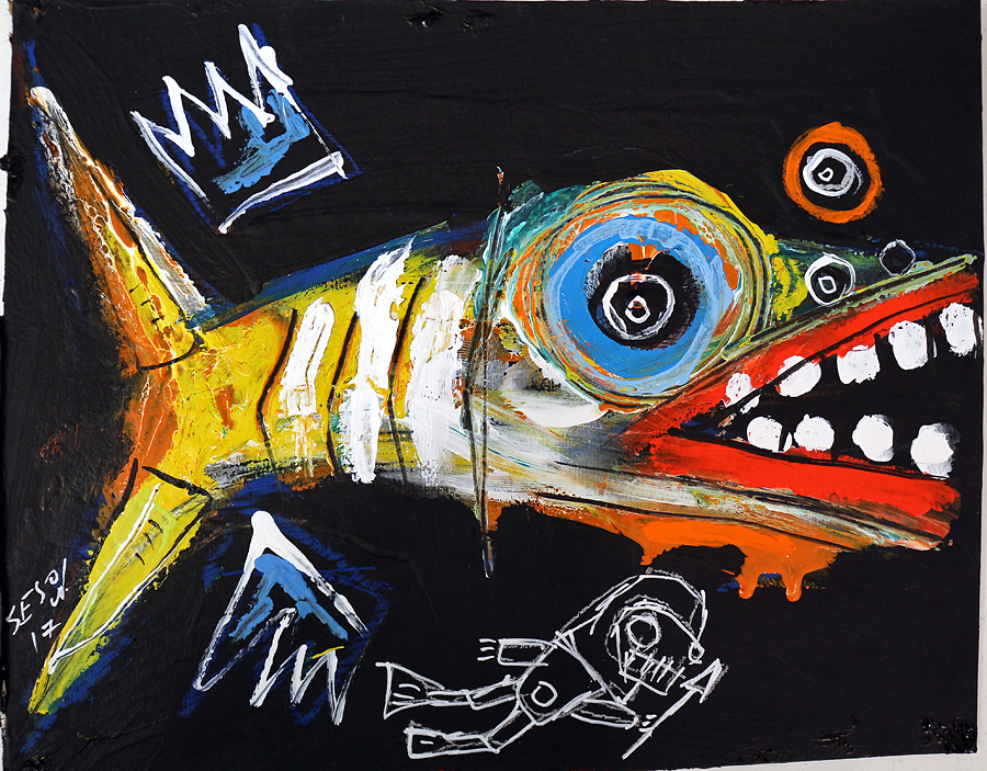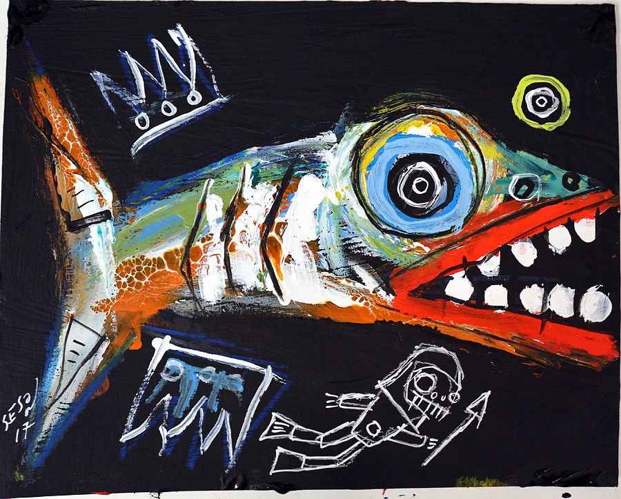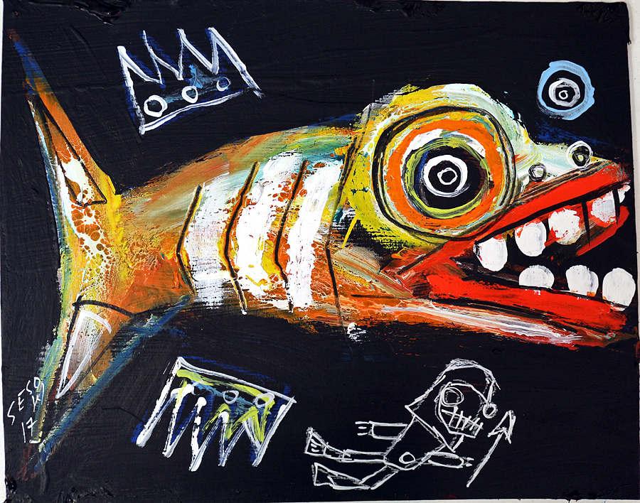 "Fish and Diver" acrylic on cardboard 8" x 10" *SOLD email sesow@sesow.com to reserve/ask about purchasing. please include url and description. |