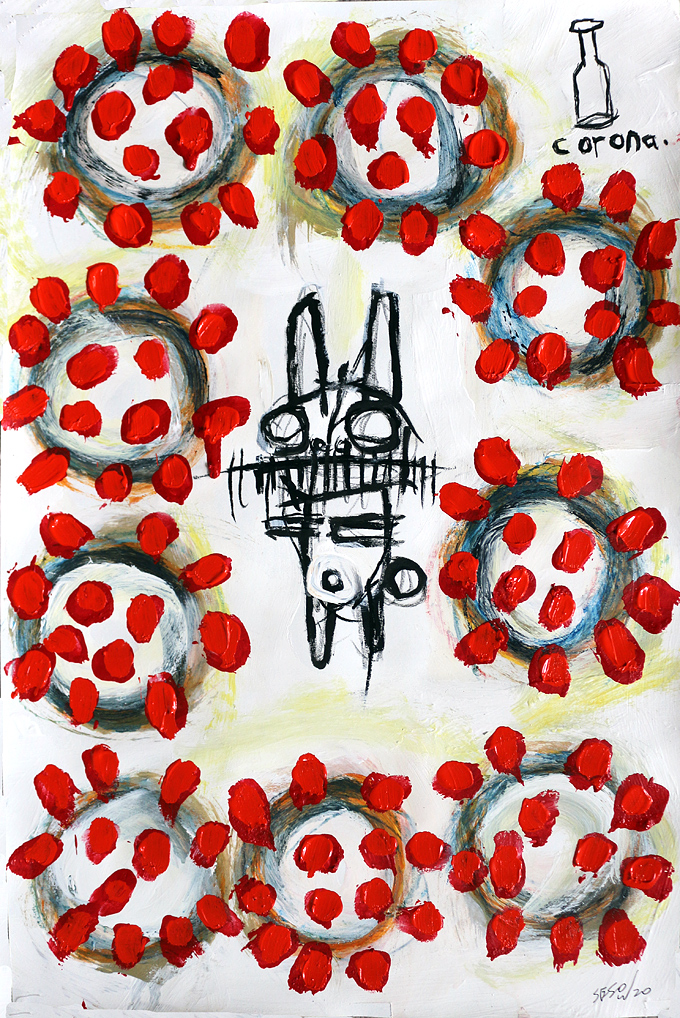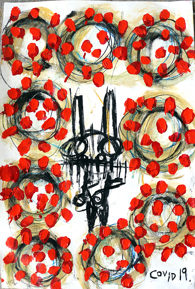 "COVID19" oil/acrylic on paper 12" x 18" *SOLD email sesow@sesow.com to reserve/ask about purchasing. please include url and description. |