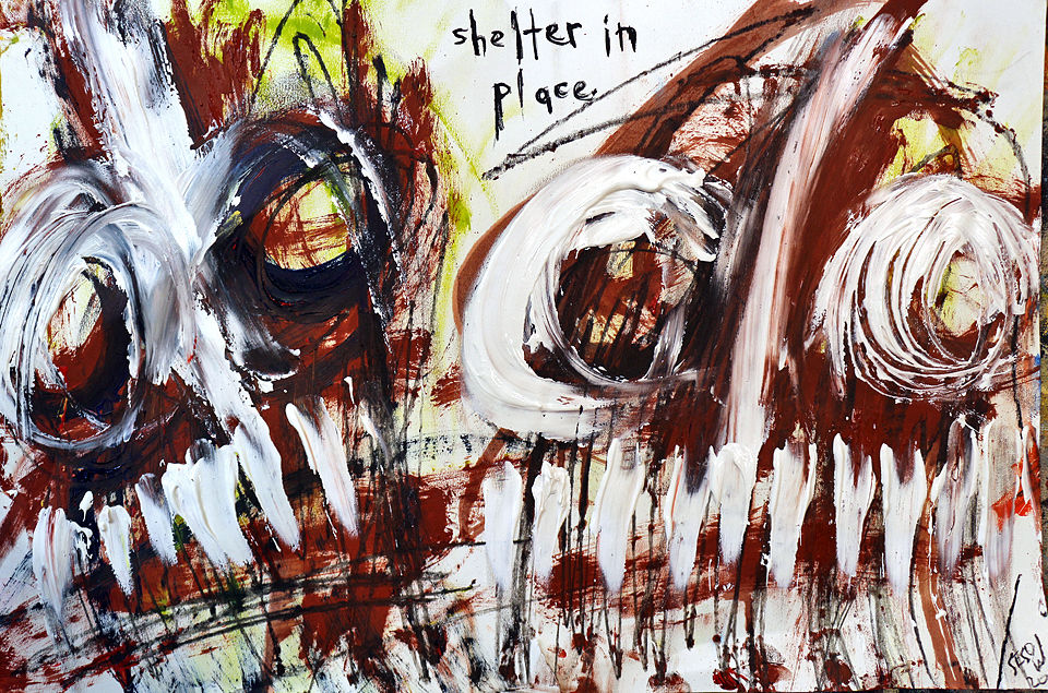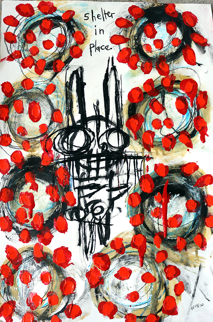 "Shelter in Place" oil/acrylic on paper 12" x 18" *SOLD email sesow@sesow.com to reserve/ask about purchasing. please include url and description. |