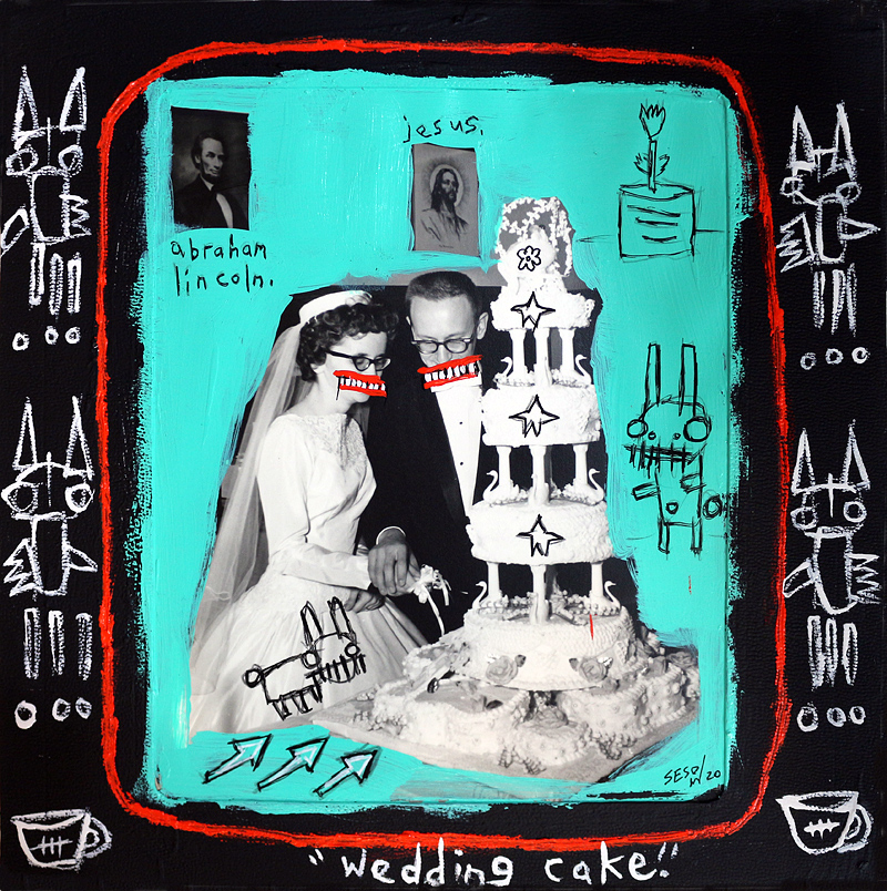 "Wedding Cake" acrylic/mix on photo and paper 11.5 x 11.5" *SOLD email sesow@sesow.com to reserve/ask about purchasing. please include url and description. |